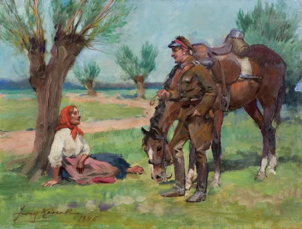 na odwrocie centralnie pieczęć: Stwierdzam autentycz | ność [tego obrazu] |Jerzy Kossak