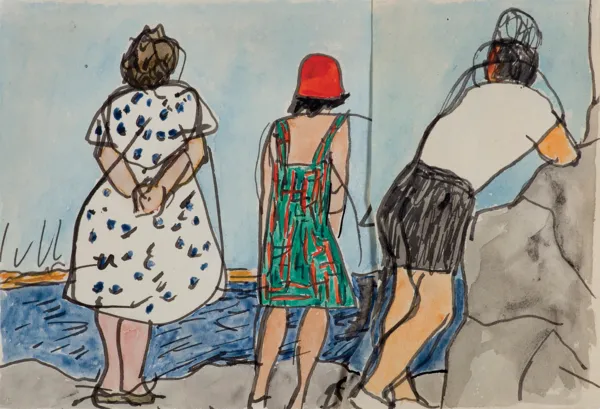 O istotnym znaczeniu rysunku w twórczości Józefa Czapskiego, pisał Wojciech Zmorzyński: Para w kawiarni, samotny mężczyzna na stacji metra, kobieta w kościele - zobaczone i błyskawicznie odnotowane na kartkach szkicownika. Notował na gorąco, wręcz reportersko, zatrzymując w nieruchomym kadrze nagłe olśnienia, nadając im znamiona trwałości. Używał flamastrów, kredek, ołówków, zdaje się wszystkiego, co miał pod ręką (...). Rysunek nie był dla Czapskiego tylko ćwiczeniem ręki, lecz przede wszyst...