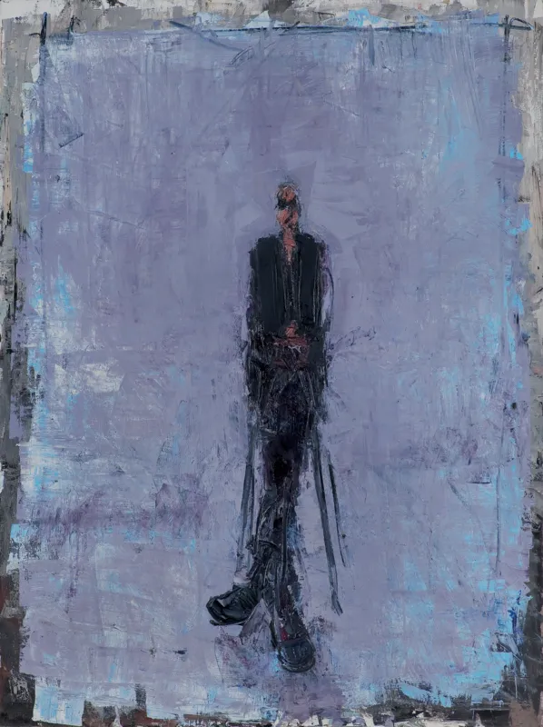 sygn. na odwr. na płótnie p.g.: Jacek | Sienicki | „człowiek“ | 1990 | ol. pł, l.g. pieczątka wywozowa, na śr. listwie: [...] Sienicki, oł.: 147 x 110 x 10, na p. listwie krosna flamastrem nr w kolekcji: 7004