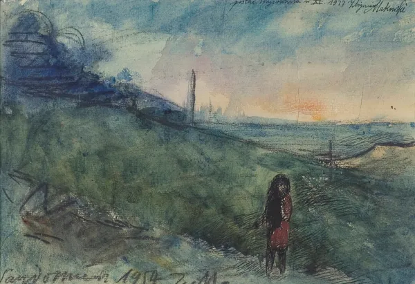 sygn. pastelem l.d.: Sandomierz 1954 Z. M., tuszem p.g.: postać dorysowana w XI. 1977 ZbigniewMakowski