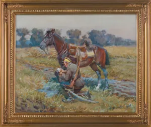 Na odwr. l.d. nalepka wystawowa Towarzystwa Zachęty Sztuk Pięknych w Warszawie (pieczęć, druk, tusz): 14555 Autor Bagieński Stanisław | Tytuł Opatrunek Rodzaj dzieła gwasz | Cena 700 Własność Data nadesłania 20/I 1926