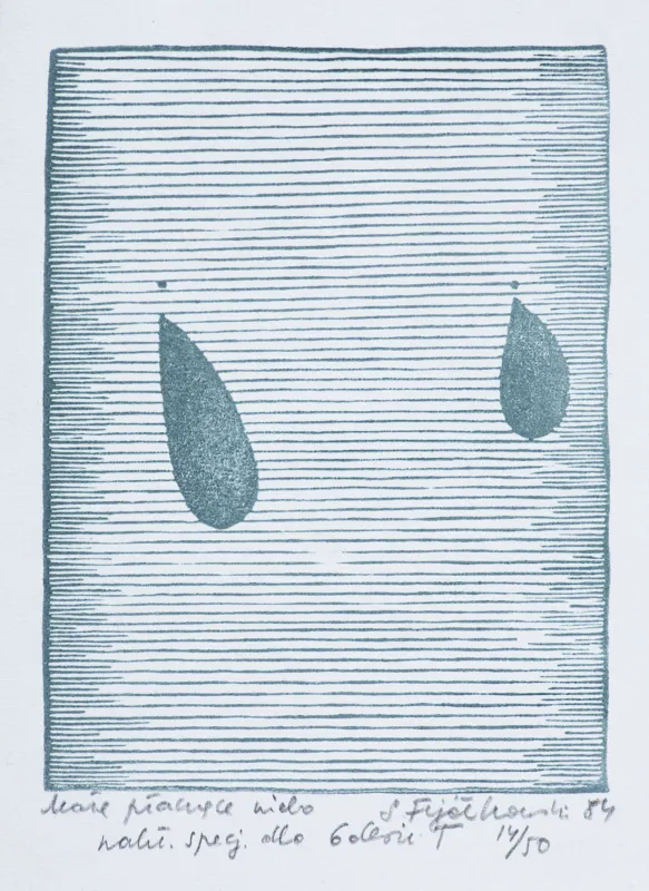 sygn. oł. pod ryc. l.: Małe płaczące niebo, p.: S Fijałkowski 84, niżej: nakł. specj. dla Galerii T 14/50