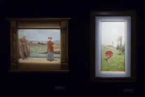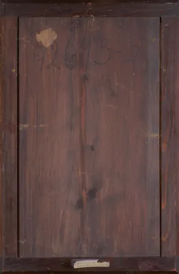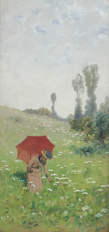Na odwr. l.g. (niebieską kredką): Z75; na dolnej listwie ramy nalepka (długopis): Roman Kochanowski | Lady with Umbrella Picking Daisies (1892).