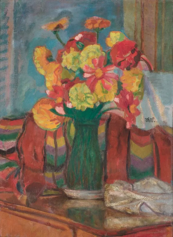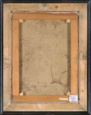Na dolnej listwie krosien po prawej nalepka (druk, długopis): MUZEUM NARODOWE W POZNANIU | Rok 1977 | 94; obok nalepka domu aukcyjnego.