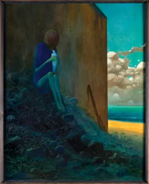 Prezentowany obraz należy do tzw. okresu fantastycznego, który przyniósł Beksińskiemu uznanie i popularność. W dziełach pochodzących z lat 70. artysta często posługuje się motywami o treściach, które można byłoby interpretować według klucza literacko-symbolicznego, od...