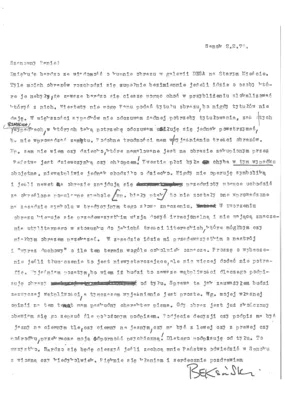 Zachował się list Zdzisława Beksińskiego z 2 lutego 1976 r. skierowany do pierwszego nabywcy obrazu. Artysta pisał: Szanowny Panie! Dziękuję bardzo za wiadomość o kupnie obrazu [...] Tyle moich obrazów rozchodzi się zupełnie bezimiennie jeżeli idzie o osoby które je nabyły, że zawsze bardzo się cieszę mogąc choć w przybliżeniu zlokalizować któryś z nich. Niestety nie mogę Panu podać tytułu obrazu, bo nigdy tytułów nie daję. W większości wypadków nie odczuwam żadnej potrzeby tytułowania, zaś w tych RZADKICH wypadkach, w których taką potrzebę odczuwam, usiłuję się jednak powstrzymać, by nie wprowadzać zamętu. Podobne trudności mam w wyjaśnianiu treści obrazów. Np. sam nie wiem czy dziecko, które namalowane jest na obrazie zakupionym przez Państwa jest dziewczynką czy chłopcem! Kwestia płci była chyba w tym wypadku obojętna, niewątpliwie jednak chodziło o dziecko. Nigdy nie operuję symboliką, i jeśli nawet na obrazie znajdują się przedmioty mogące uchodzić za określone popularne symbole (np. biały ptak) to nie zostały one wprowadzone na zasadzie symbolu w tradycyjnym tego słowa znaczeniu. W tworzeniu obrazu kieruję się przedewszystkim wizją dosyć irracjonalną i nie mającą znaczenia utylitarnego w stosunku do jakichś treści literackich, które mógłbym czy miałbym obrazem przekazać. W zasadzie idzie mi przedewszystkim o nastrój i „wyraz duchowy“ o ile ten termin wogóle cokolwiek oznacza. Proszę o wybaczenie jeśli tłumaczenie to jest niewystarczające, ale nic więcej dodać nie potrafię. Wyjaśniam pozatym, bo wiem iż budzi to zawsze wątpliwości dlaczego podpisuję obrazy od tyłu. Sprawa ta jak zauważyłem budzi zazwyczaj wątpliwości, a tymczasem wyjaśnienie jest proste. Wg. mojej własnej opinii na ten temat mam paskudny charakter pisma. Gdy obraz jest już skończony obawiam się go zepsuć źle położonym podpisem. Podjęcie decyzji czy podpis ma być jasny na ciemnym tle, czy ciemny na jasnym, czy ma być z lewej czy z prawej czy pośrodku, przekracza moją odporność psychiczną! Dlatego podpisuję od tyłu. To wszystko. Bardzo się będę cieszyć jeśli zechcą mnie Państwo odwiedzić w Sanoku z wiosną czy kiedykolwiek. Pięknie się kłaniam i serdecznie pozdrawiam. Beksiński
