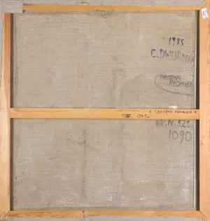Format obrazu został zmieniony przez Dwurnika (lub na jego zlecenie) poprzez doklejenie pasów płótna do wcześniej wyciętego obrazu. O tym, że było to działanie artys...
