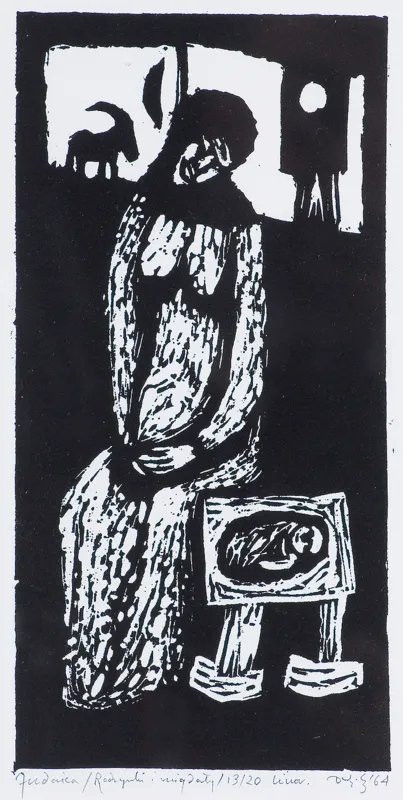 sygn. oł. pod ryc.: Judaica /Rodzynki i migdały/ 13/20 linor. Duda. G’64