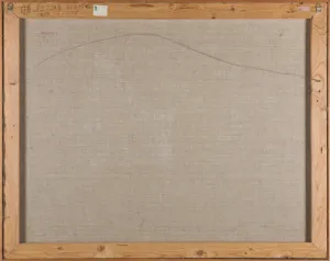 Na odwr. na g. listwie krosna l.: 17 [w kółku] PEJZAŻ 80 X 100 | 1988 AKRYL, obok nalepka Centrali Handlu Zagranicznego Ars Polona z napisem dłg.: D/341/89 | T. Dominik 17 [w kółku] | UABBBB AEBB; poniżej na płótnie p.g. flamastrem numer zezwolenia na wywóz za granicę.