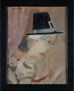 Na tzw. zaplecku centralnie nalepka papierowa (czarny cienkopis, niebieski cienkopis, oł.): PAINTING No 58 I . WRITTEN IN PENCIL I ON BACK (BY R.K.?) I „LONDON 1938) I PILGRIM GIRL I TEATR DZIECIĘCY; p.g. i l.d. dwie nalepki z kodem kreskowym