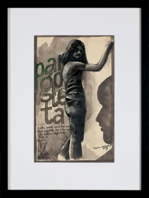 napis po l.: par | go | le | ta, niżej fragment z Boskiej Komedii Dantego, Czyściec Pieśń XXXI: O altra vanita con si brev’uso | Nuovo augelletto due o tre asp [etta] | Ma dinanzi dagli occhi | Rete si | [...]