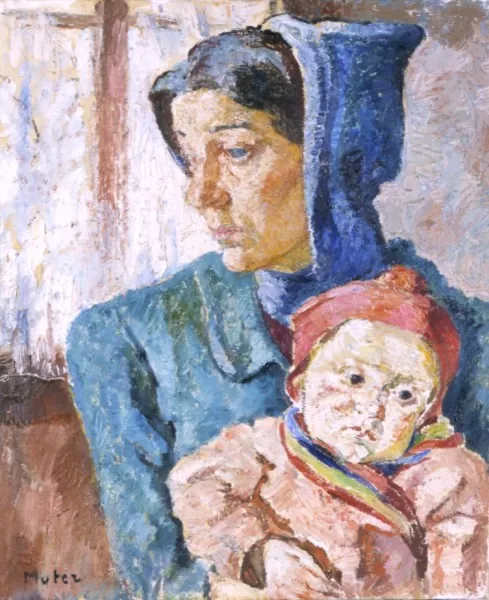Obraz reprezentuje typowe dla artystki ujęcie tematu macierzyństwa – w zbliżeniu („ciasnym kadrze”), które dodaje przedstawieniu aury intymności, z doskonałą znajomością anatomii, ułożenia, ruchów kilkumiesięcznego dziecka, w kontrastującym z tematem tonie zadumy, a nawet smutku, malującego się na twarzach postaci. Jasny, białawy koloryt obrazu i jego faktura złuszczonego tynku należą również do cech charakterystycznych malarstwa Meli Muter z dojrzałych lat je...