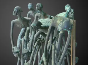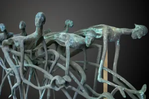 Kompozycje związane z tematyką sportową najpełniej realizował jednak w trójwymiarowych pracach przestrzennych. Temat Kolarzy pojawił się w kilku kompozycjach Chromego, w różnej skali – od małych form o wysokości 40 cm do największych, przekraczających 2 metry – tak jak w kompozycji, którą przedstawiamy na naszej aukcji. Jedną z kompozycji z tego cyklu, można podziwiać w Centrum Olimpijskim w Warszawie, inne znajdują się w muzeach i kolekcjach prywatnych. Artysta z niezwykłą trafnością oddał w swojej rzeźbie dynamikę wyścigu kolarskiego poprzez zachodzące na siebie, nadnaturalnie powiększone koła rowerów, pochylone sylwetki kolarzy i wydłużone proporcje ciał. Lata 70. do 90. były czasem wielkich sukcesów polskich kolarzy, co sprzyjało podejmowaniu tego tematu także i w sztuce.