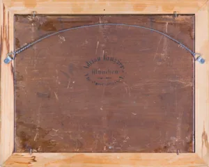 Na odwrocie owalna pieczęć monachijskiej firmy z przyborami malarskimi: Adrian Brugger | München | Theatinerstrasse. 2.