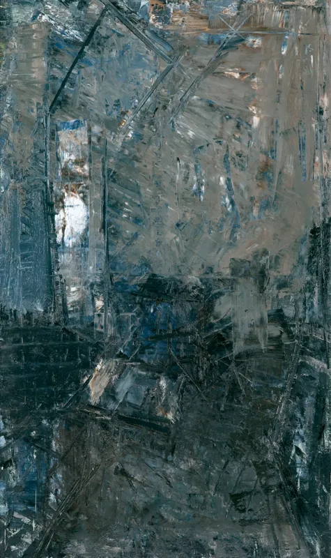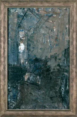 Przedstawiony na naszej aukcji obraz, namalowany został w pracowni artysty przy ul. Rycerskiej 10, na Starym Mieście. O wnętrzu tej pracowni, pisał Stanisław Rodziński: Pracownia Jacka Sienickiego na Starym Mieście w Warszawie jest niewielka, wręcz ciasna. Ma silnie określony spadzisty strop, w nim mocno wykrojone dwa okna. Z jednej strony sterty płócien, rysunki w rulonach, po drugiej – stoliki z przyborami, warsztat malarza. (...) Odczytujemy meble, warsztat malarski, stolik i sztalugę. Płaszczyzna płótna utrzymana w równowadze, ale już zaczyna się rodzić intryga stropu przeciętego oknem. Może właśnie ten niezmiernie frapujący fragment wnętrza zdeterminował malarza i spowodował zamysł następnego płótna. (...) Sienicki malować będzie odtąd wnętrze swej pracowni prawie wyłącznie dlatego, by malować przestrzeń i światło. Przechodzi na duże, bardzo duże nawet formaty. Po szeregu intensywnym kolorem aranżowanych wariantów, ogranicza paletę do prawie monochromatycznych szarości i błękitów (...) To właśnie ograniczenie środków prowadzi malarza do podjęcia jednego z najstarszych i najtrudniejszych problemów w malarstwie: do problemu światła. (Stanisław Rodziński, Jacek Sienicki, [w:] kat. wystawy w BWA, Kraków, 1971, s. 12-13)