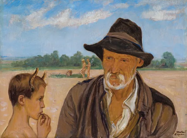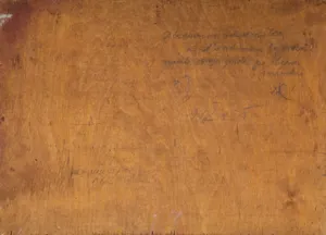 – po prawej u góry dedykacja ręką artysty (ołówek): dla duszy mej stokroć milszą | kąpiel w rodzimem bajorku | aniżeli droga jazda po obcem | jeziorku | [monogram wiązany] WH; poniżej wymiary: 26 x 35.