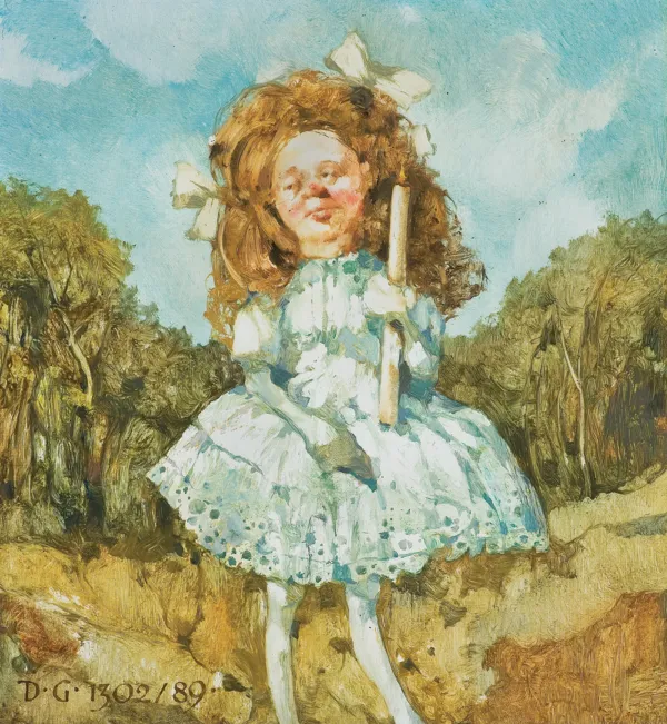 Motyw ubranej pierwszokomunijnie dziewczynki z gromnicą pojawiał się w obrazach Dudy Gracza od lat 70. (por. Pamiątka z prewentorium, 1977; Niedziela I, 1977). Mała mieszkanka polskiej prowincji – upozowana niczym do pamiątkowego zdjęcia – była zawsze portretowana na tle malowniczego krajobrazu. W wersji z 1989 roku artysta nadał...