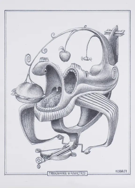 sygn. śr. d. w ramce: TANKOWANIE W POWIETRZU, p.d.: YERKA 2024