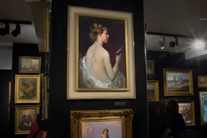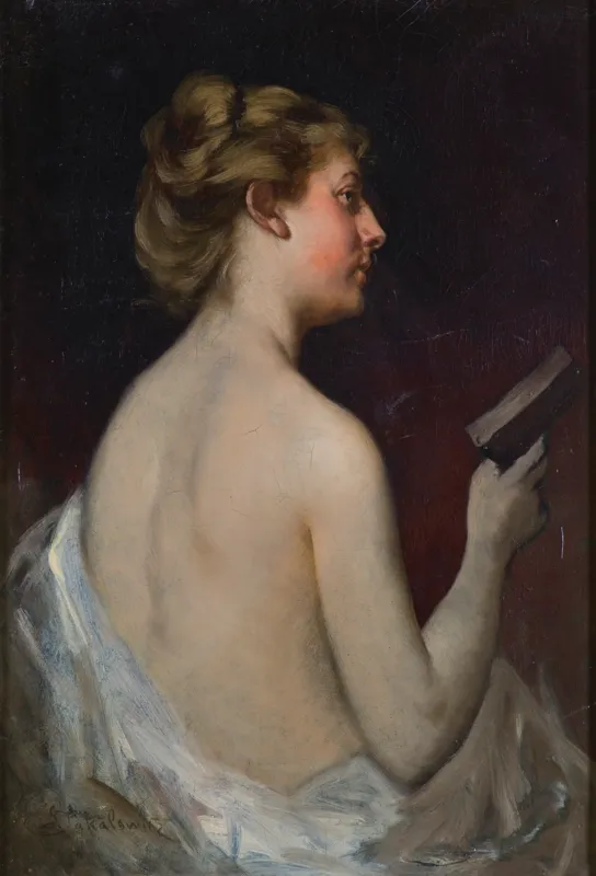 Na odwrocie owalny stempel paryskiego składu przyborów malarskich: TOILES TABLEAUX & COULEURS | ENCADREMENTS | LATOUCHE | PARIS | 34, Rue de Lafayette 34.