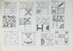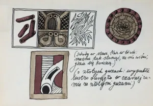 Zawiera 90 stron zarysowanych, w większości są to szkice lub elementy używane przez artystę w kompozycjach malarskich (ornamenty, znaki, bryły, figury geometryczne, pojedyncze przedmioty). Pierwsza rozkładówka zawiera dedykację i sygnaturę tuszem, po lewej: ofiarowane | Teresie. | V | 1978 | (jeśli będą komentarze tuszem,...