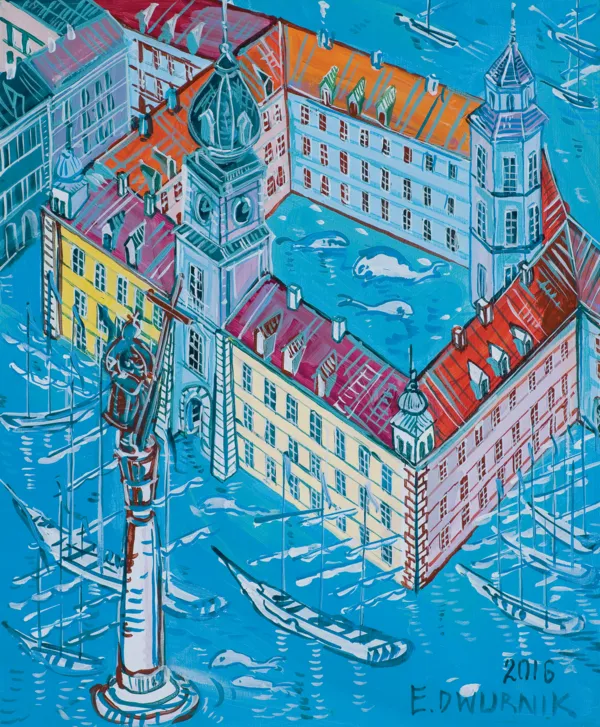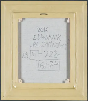 sygn na odwr. na płótnie: 2016 | E. DWURNIK | „PL. ZAMKOWY“ | NR: XI [w ramce] – 728 – | 6174 [w ramce]
