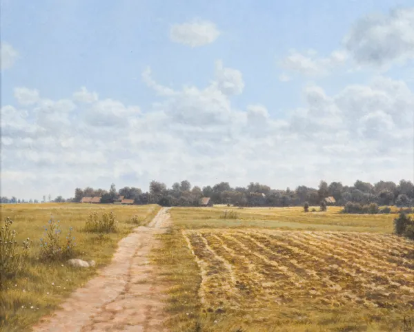 sygn. na odwr. na płótnie: 2014 [w ramce] MACIEJ CICHOCKI | „W PARKU – NA WIEŚ, GLINIANKA” | 40 x 50 cm