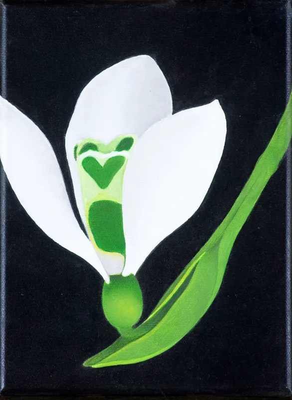 sygn. na odwr. na płótnie: ANTONI-JANUSZ | WOJNAROWSKI | BIAŁY KWIAT. | OLEJ/PŁÓTNO | 18 x 24 CM. | 2016 r | AJW 2016 [monogram wiązany z datą]