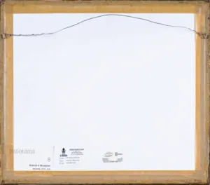 Na tzw. zaplecku przy dolnej krawędzi trzy nalepki – dwie warszawskich domów aukcyjnych oraz firmy ramiarskiej.