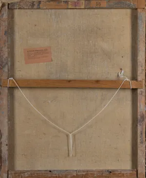 na odwr. na płótnie l.g. nalepka XXIX Biennale w Wenecji 1958 z danymi obrazu, w rogu nr tuszem: 28, na g. listwie krosna trzy nalepki: XXIX Biennale w Wenecji 1958 z danymi obrazu (częściowo zniszczona), włoska nalepka celna, nalepka XXIX Biennale w Wenecji z numerem 515.