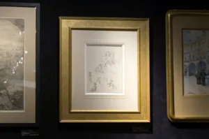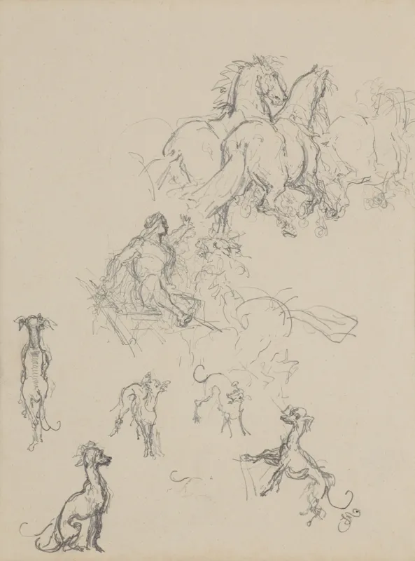 Wśród szkiców artysty odnajdujemy także studia innych zwierząt. Wśród nich bliskiej analogii dla przedstawionego z humorem psa jednak nie ma, mimo, że artysta nie stronił od karykatury.