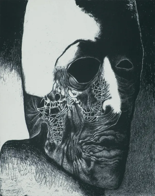 W zamieszczonym na tej stronie „Przewodniku po muzeum“ czytamy: Równolegle z rysunkami i monotypiami Beksiński tworzył heliotypie. Była to technika, którą sam wymyślił. Polegała na pokrywaniu szyby czarną farbą, po czym na rysowaniu po niej ostrym narzędziem. Następnie Beksiński kładł tak stworzoną pracę na papierze światłoczułym i wystawiał wszystko na słońce. Tworzył w ten sposób po cztery odbitki każdej heliotypii, które potem stemplował na odwrocie i numerował [wg autorskiego stempla nakład odbitek wynosił 8 szt. – przyp. red.]. Następnie niszczył szybę z pierwowzorem.