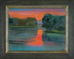 sygn. na odwr. na płótnie: S. Baj | Rzeka Bug | Zachód słońca | 2021