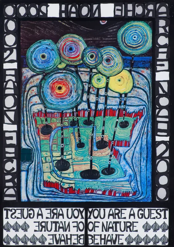 l.d. metryka z płyty: 775 [w kółku] Hundertwasser © | JARDIN PUBLIQUE | RIO NEGRO | AMAZONAS | 7.9.77. | HAHNSACE [?] | AUSTRIA | FEB.78