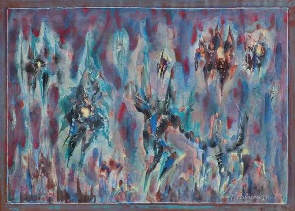 sygn. flamastrem na odwr. ś.d.: J Tchórzewski 83 | „ŚWIATŁA“ | akryl