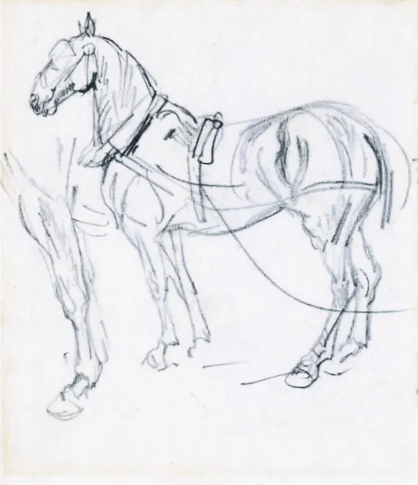 Prezentowany dwustronny rysunek pochodzi przypuszczalnie z lat 1837-1846, a powstać mógł w którymś z majątków Michałowskiego – w Krzyżtoporzycach lub Bolestraszycach – gdzie, jak wspomina córka artysty, „wieczorami przy herbacie, przy lampie, gdy mu czytano najnowsze arcydzieła literatury naszej, to Krasińskiego, to powieści Czajkowskiego itd. [ojciec] kreślił mnóstwo szkiców piórem. Szkicowanie tak mu było właściwem, że jakby bezwiednie zapełniał nimi księgi gospodarcze, rachunkowe, w których obok cyfr mnożyły się konie, ludzie, często ci, z którymi miał w obecnej chwili do czynienia”. (n.n. [Celina Michałowska], Piotr Michałowski. Rys życia, zawód artystyczny, działalność w życiu publicznym, Kraków 1911, s. 73.)