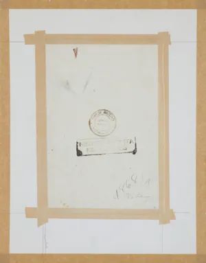 Na tzw. „zaplecku“ przy d. krawędzi papierowa nalepka antykwariusza z Frankfurtu n. Menem: Karl Vonderbank | KUNSTHANDLUNG | FRANKFURT / MAIN | GOETHESTRASSE 11.