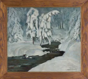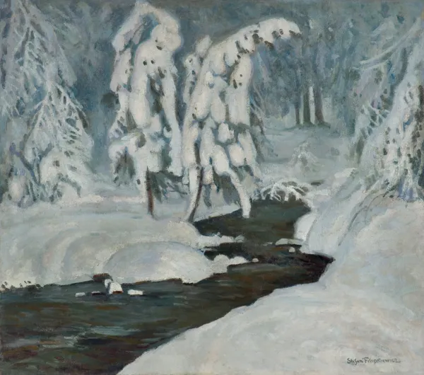 – na górnej listwie krosien malarskich napis (flamaster): Waldbach im Winter St. Filipkiewicz;