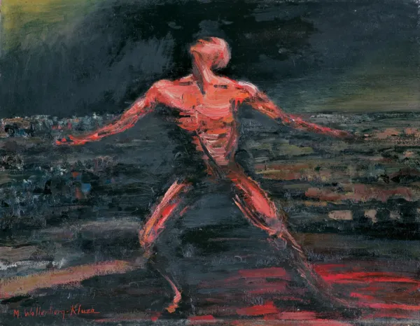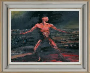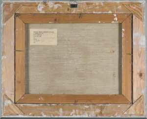 Na odwr. na płótnie l.g. nalepka autorska z danymi obrazu i adresem.