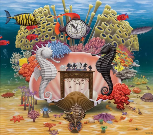 granice między naturą, architekturą a fantazją całkowicie się zacierają. Osadzone w muszli szachowe