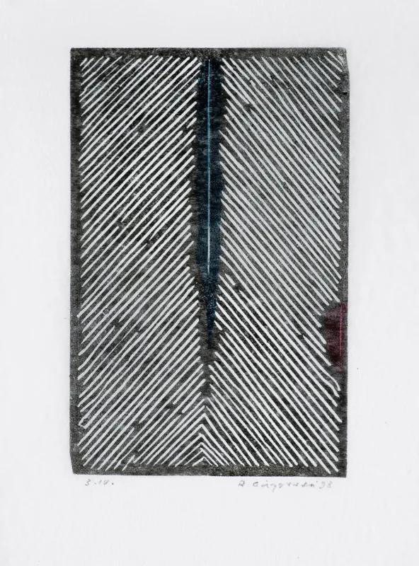 linoryt kolorowany, bibuła - 13.6 cm x 8.5 cm