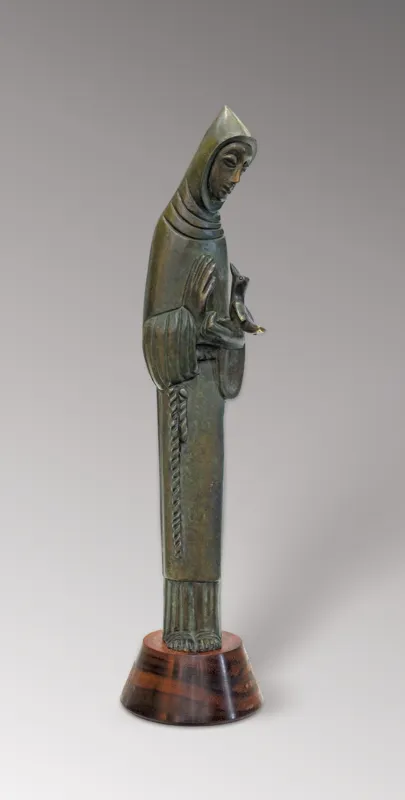 Rzeźba z cyklu statuetek świętych, powstałych na zamówienie paryskiej firmy Chéret, trudniącej się wykonywaniem artystycznych dewocjonaliów. Jean Lambert-Rucki współpracował z nią od 1939 do końca życia. Św. Franciszek z ok. 1959 występuje również w innej wersji, z dwiema figurkami ptaka: w dłoniach i na czubku głowy – reprodukowanej w monografii artysty (Artur Winiarski, Jean Lambert-Rucki 1888-1967, Villa La Fleur, Konstancin-Jeziorna 21 IX – 31 XII 2017, kat. 83, s. 207. Wersja oferowana jest uproszczona, „poważna“. Jak zauważył autor cytowanej monografii, żartobliwe elementy, które były specjalnością artysty, pojawiają się (...) w figurce ptaszka siedzącego na kapturze świętego Franciszka. Ten drugi wzór nie spodobał się zresztą klientom Maison Chéret.