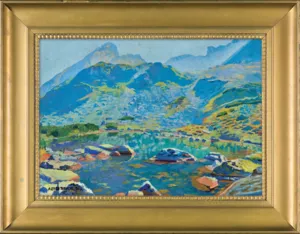 Na odwr. u dołu, po p. nalepka (druk, atrament): Związek Zawodowy Polskich Artystów Plastyków w Krakowie – „DOM PLASTYKÓW“ | Autor: Terlecki Alfred | Tytuł dzieła: Czerwony Stawek | Rodzaj dzieła: olej | Cena: 6000 zł | Podpis autora: Alfred Terlecki | Na wystawę Okręgową Z.P.A.P. na październik 1954; poniżej (ołówek): 1343; powyżej (czerwona kredka): Alfred Terlecki | Kraków Smoleńsk 20 m. 7 | Czerwony Stawek. Na ramie nalepka (druk): Muzeum Tatrzańs...