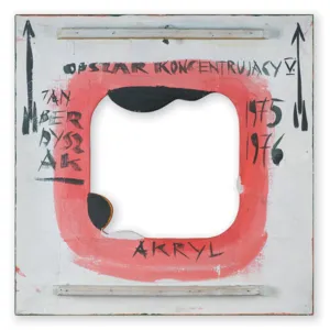 sygn. na odwr. g.: OBSZAR KONCENTRUJĄCY V., l.: JAN | BER | DYSZ | AK, obok znak strzałki w górę, p.: 1975 | 1976, obok znak strzałki w górę, d.: AKRYL