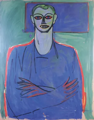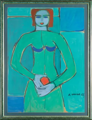 Z prac omawianego typu najbliższy Dziewczynie z pomarańczą jest Autoportret z 1954 roku (fot. obok). Łączy je zbliżony format, sposób malowania, ujęcia (portret en face, od połowy postaci, w przypadku portretu kobiecego – od bioder) i kolorystyka (zimna zieleń, mocne akcenty czerwieni). Być może nawet stanowiły dopełniającą się parę.