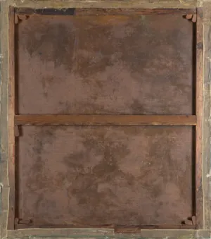 Na dolnej listwie krosien malarskich odwrotnie do kierunku kompozycji częściowo zdarta nalepka TPSP w Krakowie (druk, czarny atrament): Autor Pronaszko Zbigniew | Adres Kraków | Dzieło Pieśń wiosenna.