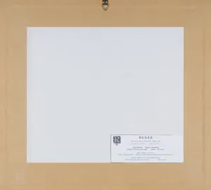 Na tzw. „zaplecku“ nalepka warszawskiego zakładu ramiarskiego.