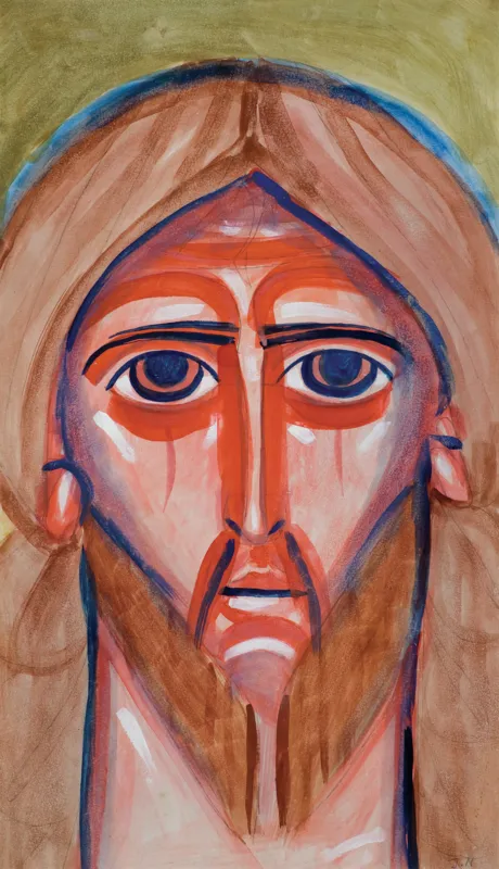 Krystyna Czerni badaczka twórczości Jerzego Nowosielskiego podobne przedstawienie Chrystusa datuje na lata 50. XX w. Pisze: Połowa lat 50. to ważny czas w rozwoju duchowym Nowosielskiego, oznacza bowiem powrót do żarliwej wiary – po dwudziestoletnim okresie zwątpienia – oraz próbę odnalezienia swojego miejsca w pejzażu polskieg...