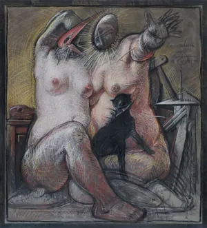 pastel, węgiel, płyta drewniana, łączona - 199.5 cm x 179.5 cm