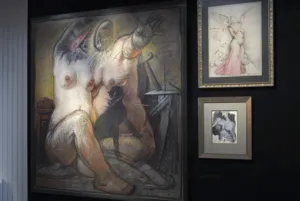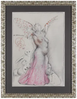 Stojąca figura z rozwiniętymi skrzydłami zamiast rąk, zazwyczaj z ptasią głową, ubrana w długą powłóczystą suknię – to częsty motyw pojawiający się na plakatach, grafikach i rysunkach Franciszka Starowieyskiego już od końca lat 60. (jedna z pierwszych wersji znalazła się na plakacie włoskiego filmu Zakochana wiedźma (reż. D. Damiani, 1968...