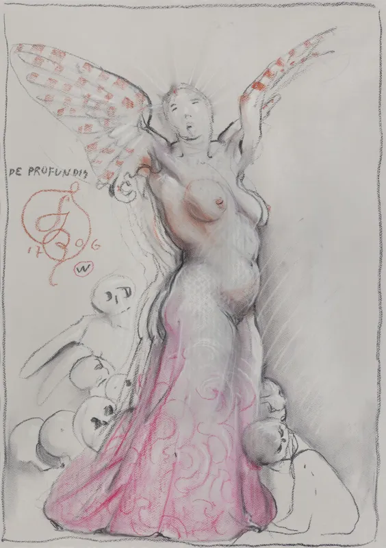 sygn. l.g. czarnym pastelem: DE PROFUNDIS, niżej brązowym: 17 FS 06, niżej czarnym w brąz. kółku: W